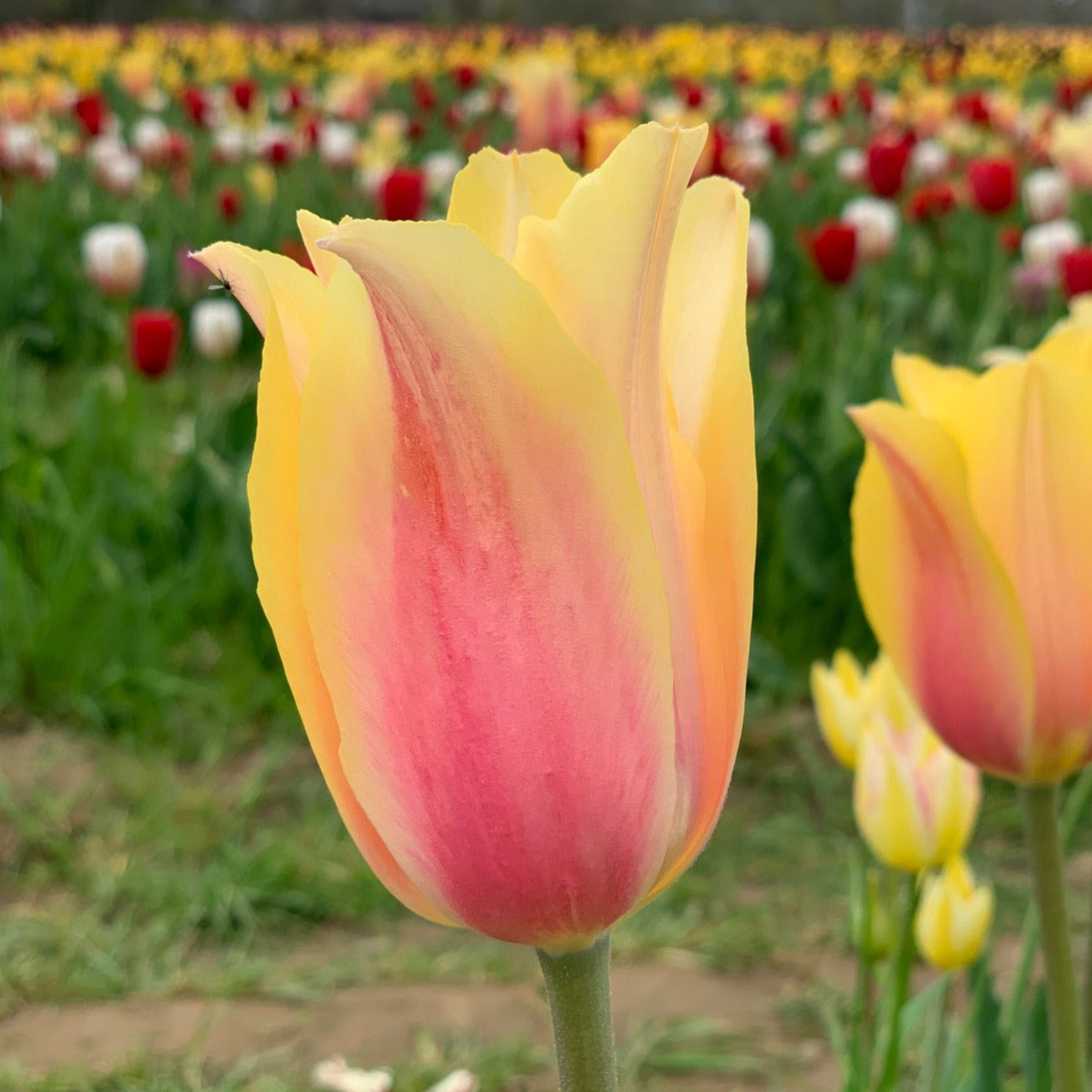 Best Seller! Our most photographed and most popular tulip. This is like planting a sunset in your garden! One of the tallest tulips that has no problem holding up to wind and rain. Blushing Lady's lily shaped petals are a soft blush-pink that flush into an even softer yellow.  These spectacular petals open wide during the day and close up tightly at night or when it's overcast.